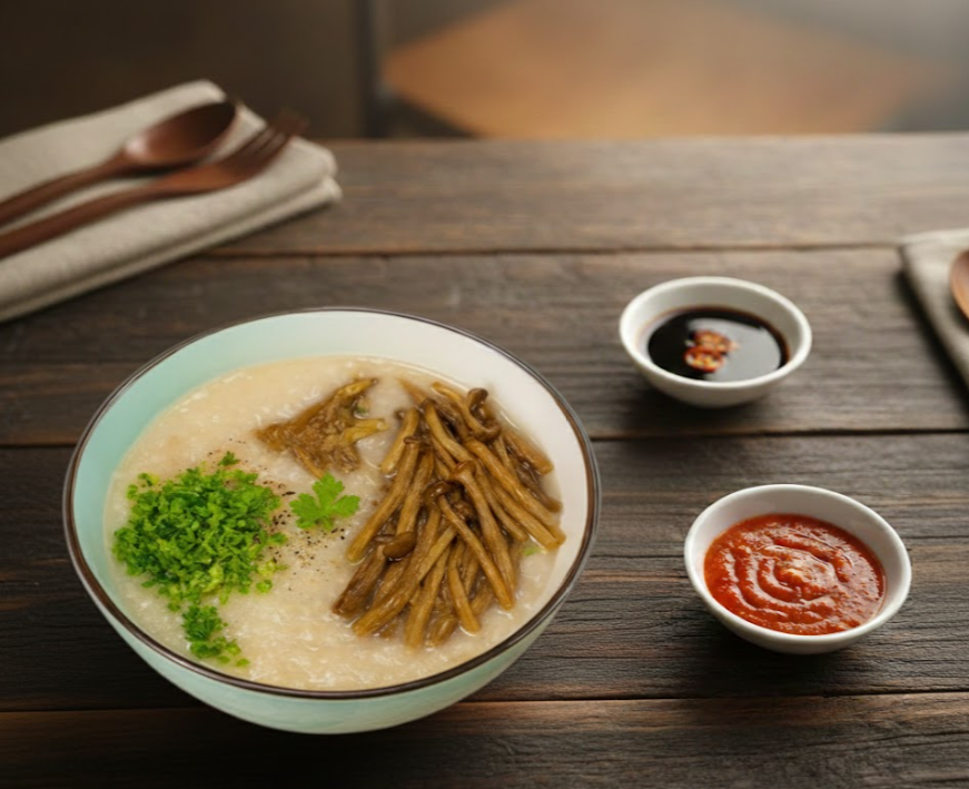 CHÁO NẤM HẢI NGƯ VEGAN Cordyceps Mushroom Porridge